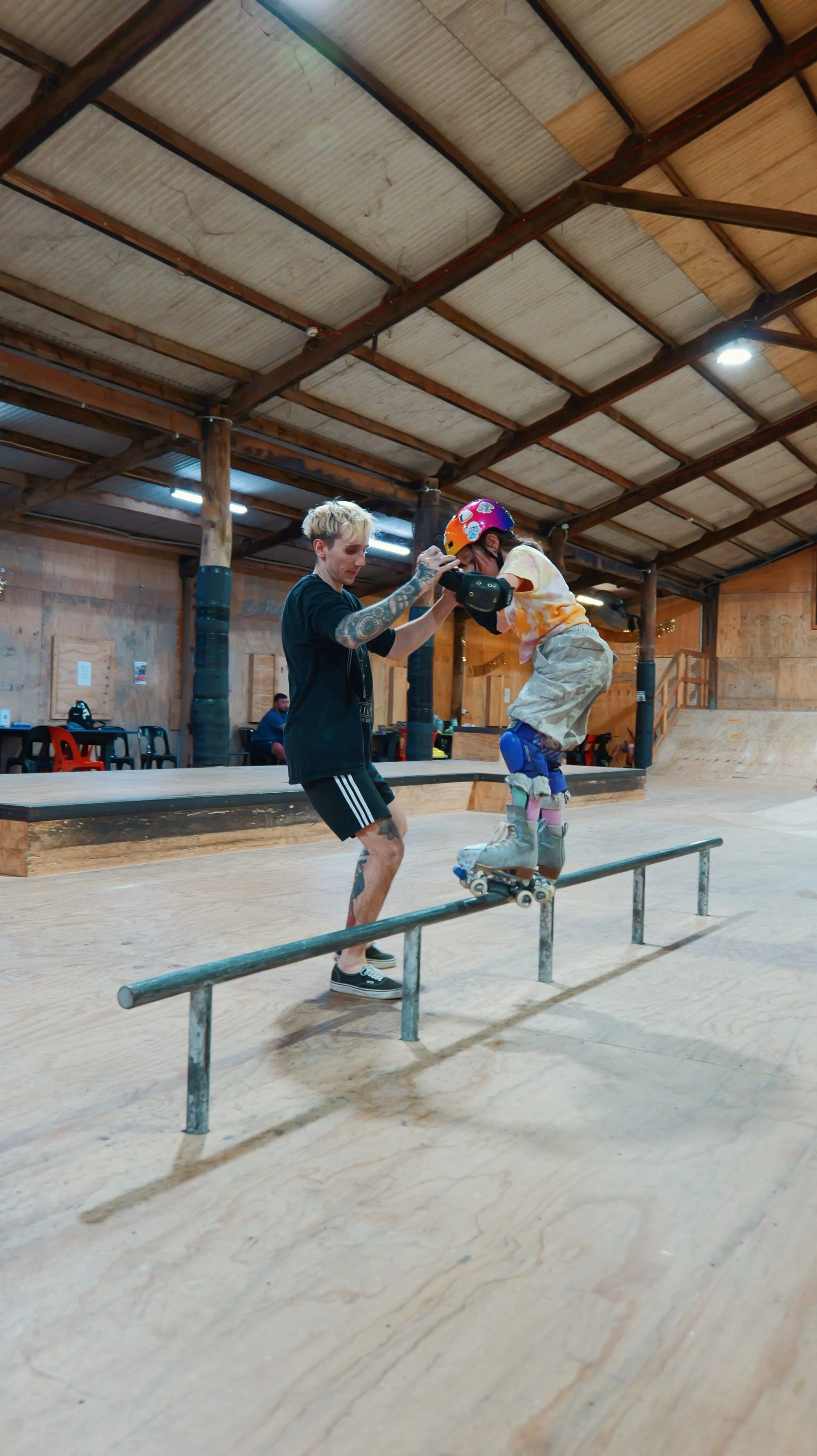 There’s honestly no greater feeling than doing your very first drop-in. The shaking in your knees and your heart thumping in your chest. You’re holding your coaches’ hand tightly as we count down, ‘3-2-1...’ You step your skate forward and experience the rush of flying down the ramp, looking over your shoulder and screaming, ‘I DID IT!’